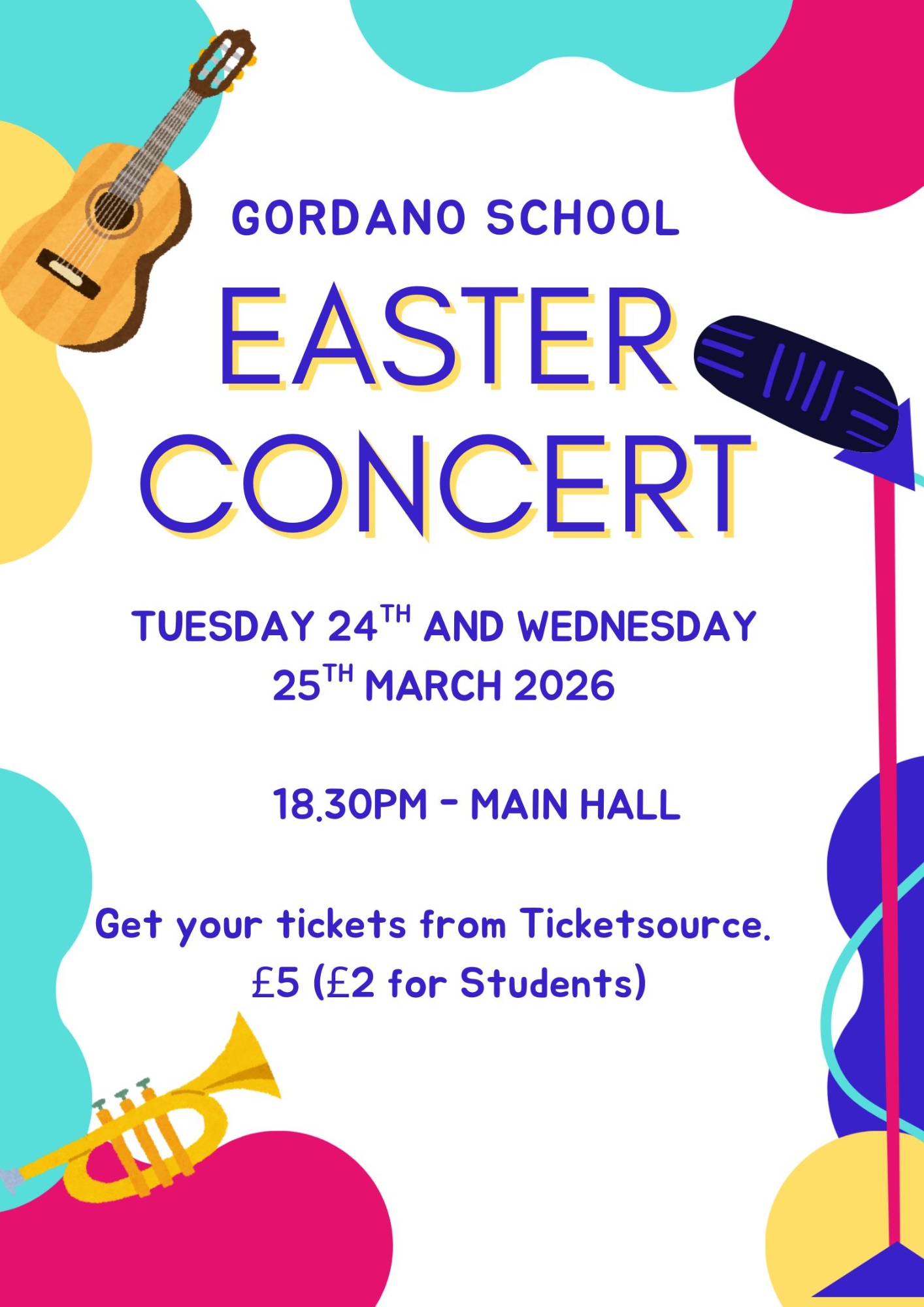 Gordano School warmly invites you to the 2026 Easter Concert, taking place on the 24th and 25th March from 6:30pm.